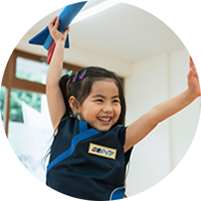 また、異学年合同プログラム「忍者バトル」を通じてリーダーシップや年下の子を思いやる気持ち、チームで考える力など社会性や協調性を育て、脳科学を基にした30のゲームにより自分で考える力を育てます。