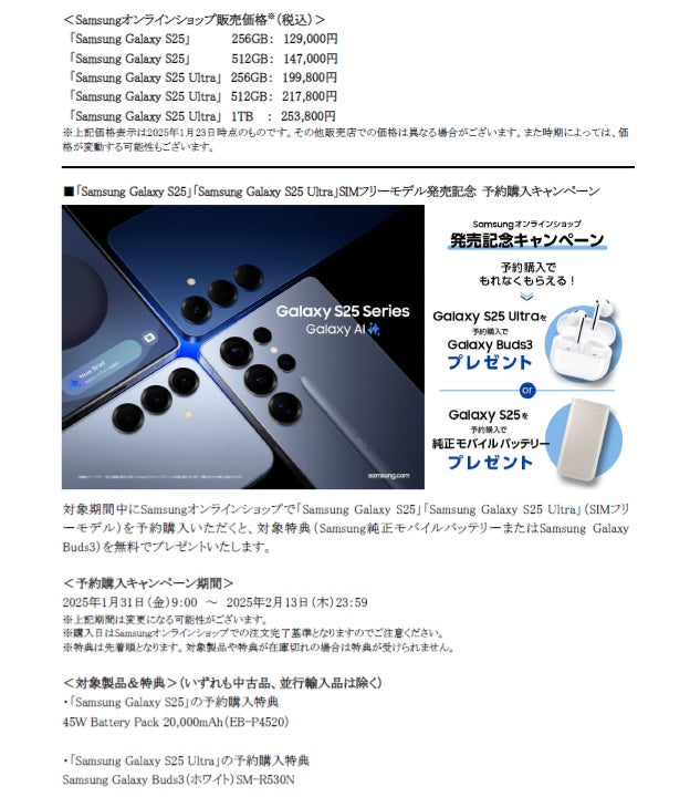 また、1月31日(金)より「Samsung Galaxy S25シリーズ発売記念 予約購入キャンペーン」※を実施いたします。