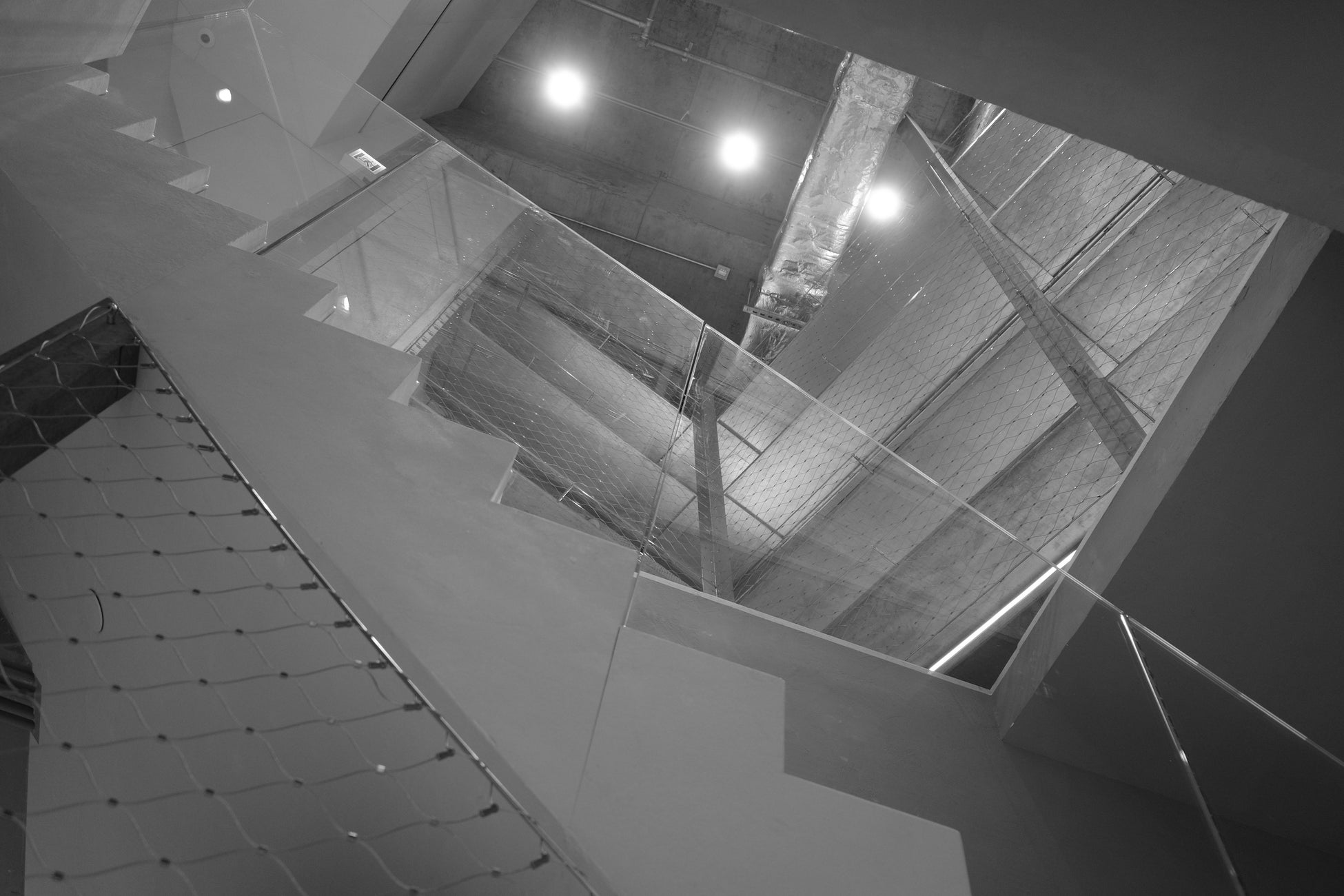 インテリアは、各階の梁(はり)を通常より大きくすることで、この記念碑性を表現しています。これにより、高さの違いが強調され、垂直軸が強調されます。天井のない場所では、既存のコンクリート構造、換気ダクト、パイプがすべて露出しています。素材は、セメントパネル、亜鉛メッキ鋼板、金網が、この空間の基礎構造としての性格を強調しています。