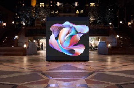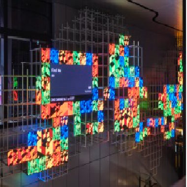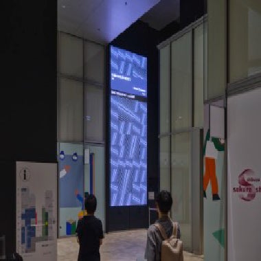 Shibuya Sakura Stageに設置されたスクエア型ユニットによるビジョン群を一体としたメディアファサード。渋谷の新たな表現を育むデジタルスクエアとして、新たなデジタルアートの社交場となることを目指している。メディアファサードを表現者に解放することで、渋谷の多様で刺激的な文化発信の一翼を担っている。