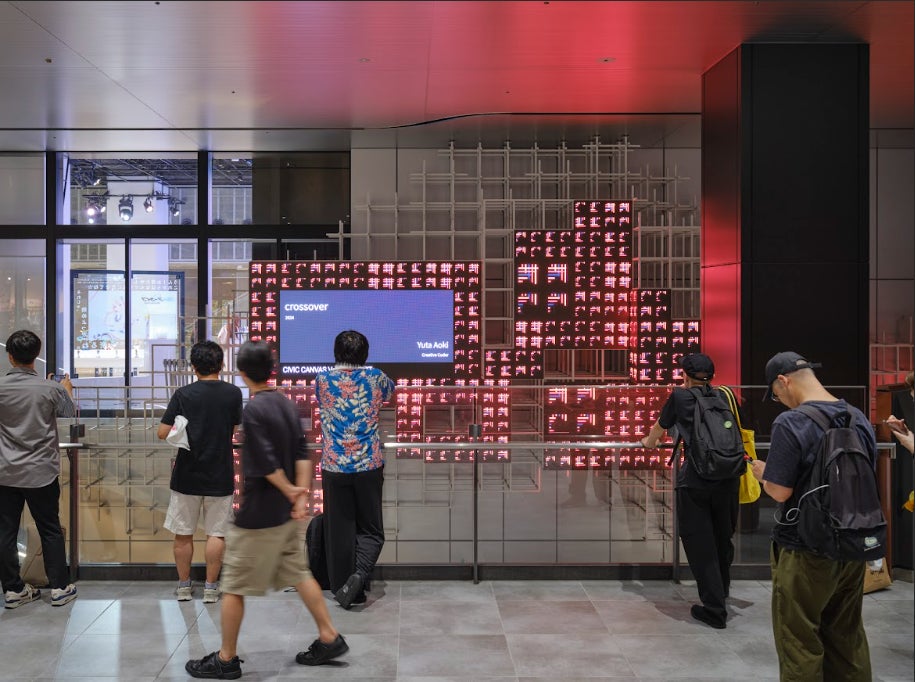 「INTER-SQUARE」は、スクエア型ユニットが集合した特徴的な形状のメディアファサードで、Shibuya Sakura Stage内4ヶ所に設置されています。多様なクリエイターによる作品発表が可能となるようシステム設計が施されており、ビジュアルの動きやパターンをファサードにあわせて自由にデザインすることが可能です。「CIVIC CANVAS」では、ワークショップにおいて、このシステムや本ファサードの形状を踏まえた制作がされたほか、駅から見える展望などを意識し、「INTER-SQUARE」だから可能となる表現が追及されました。
