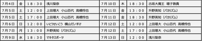 【日替わりコーナー・出演者】