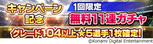 「グレード104以上★5選手」が1枚確定で獲得できる無料11連ガチャです!