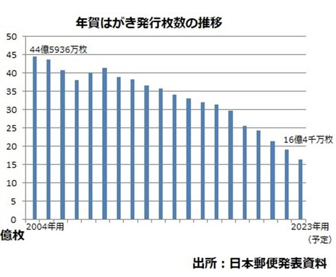 - 2023年用の年賀はがき発行枚数は前年比10%減