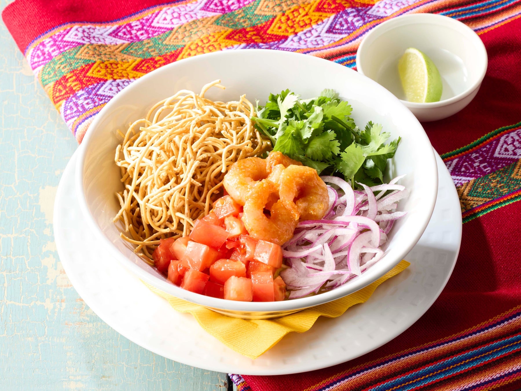 「やみつき!冷製カオソーイ~タイ風冷やし麺~」は、タイの北部・チェンマイなどで親しまれている“カオソーイ”を冷製にアレンジしたカレー風味のヌードルです。7種類のスパイスやココナッツミルクを合わせた特製ダレは、辛さと酸味がやみつきになる味わい。パリパリの麺を崩し、ぷりっとした食感の海老やダイスカットしたトマト、赤玉ねぎのスライス、パクチーとよく混ぜてお召し上がりください。