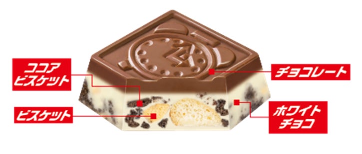 チロルチョコ〈ミルク〉とブラックサンダー。どちらもそのままでおいしいチョコ菓子を組み合わせたら、とんでもなくおいしい一品ができました。ブラックサンダーと同じココアクッキーとビスケットを使用したザクザク食感とクリーミーな味わいのホワイトチョコをお楽しみいただけます。