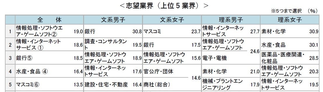 ○1位「情報処理・ソフトウエア」、2位「インターネットサービス」、3位「銀行」