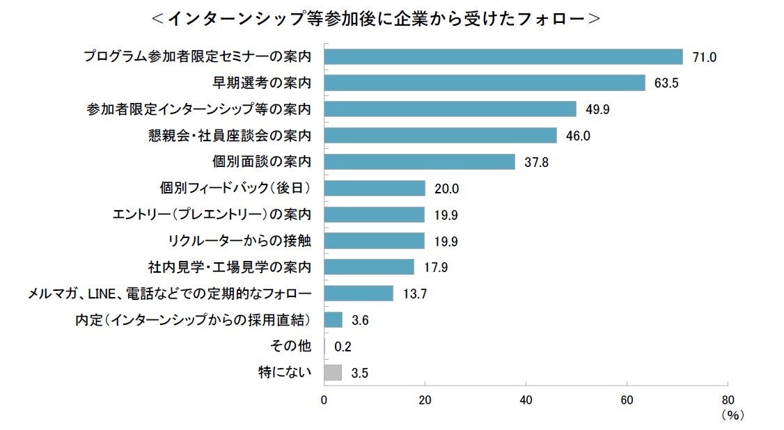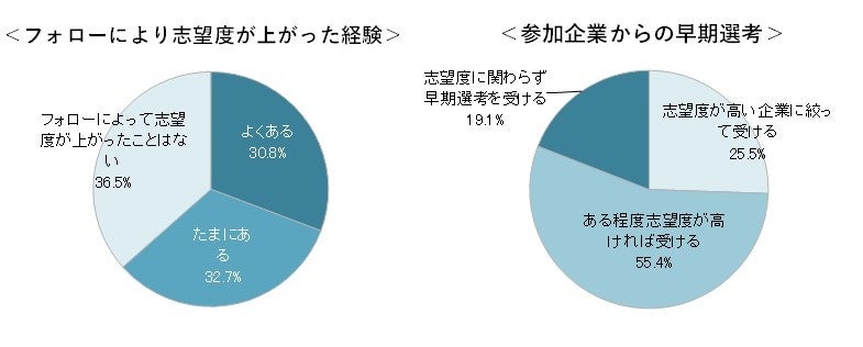 ○大半が参加後のフォローを経験。フォローによって志望度が上がった学生は6割強