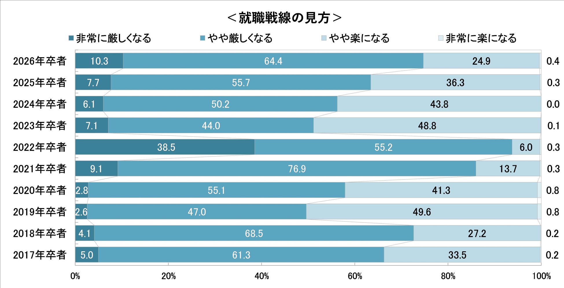 26卒就職戦線の見方、先輩たちより「厳しくなる」74.7% ~26卒学生の11月後半時点の就職意識調査