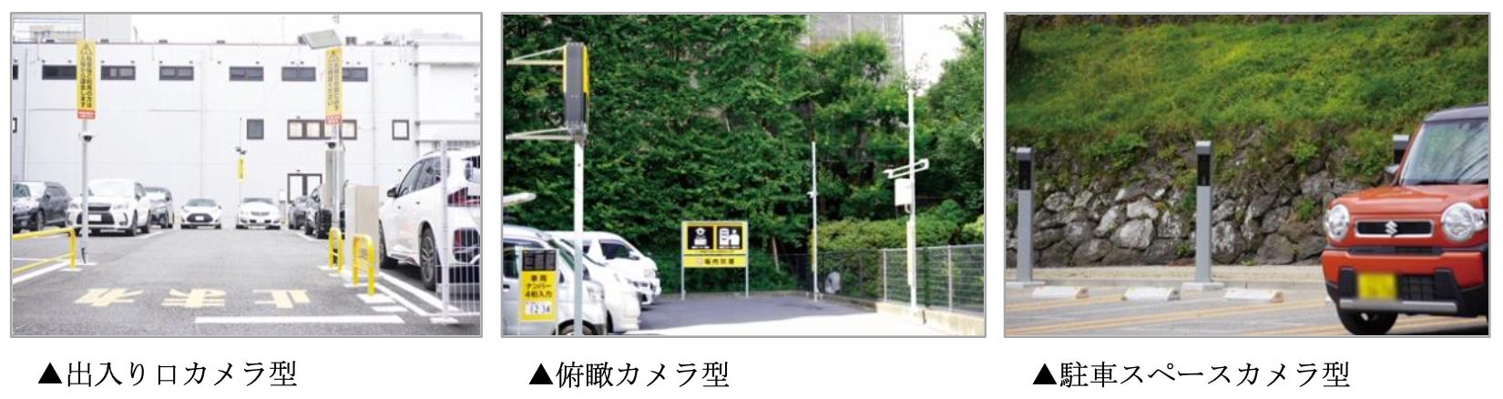 カメラ式駐車場は、ロック板などの駐車場機器や駐車券を不要にし、スムーズな入出庫による渋滞解消やペーパーレス化による環境負荷低減など、利用者にとって利便性が高く環境にやさしい駐車場です。「出入り口カメラ型」「俯瞰カメラ型」「駐車スペースカメラ型」を開発したことで、駐車場用地の大きさや地形に影響されずにカメラ式駐車場の開発を可能にしました。