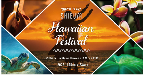 株式会社ジェーシービー (本社:東京都港区、代表取締役会長兼執行役員社長:浜川 一郎、以下:JCB)は、東急プラザ渋谷で2022年11月15日(火)~11月23日(水)に開催する「東急プラザ渋谷 Hawaiian Festival~渋谷から「Malama Hawai’i」を想う9日間~」(以下:Hawaiian Festival、主催:東急プラザ渋谷Hawaiian Festival 実行委員会)に特別協賛いたします。