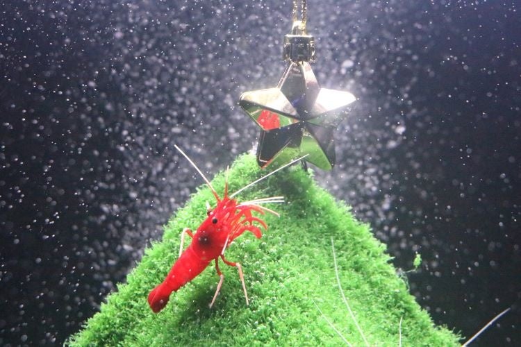 主役は、赤い体に白い模様が入った様子からサンタエビとも言われている「シロボシアカモエビ」で、水槽内のクリスマスツリーのそばを泳いでツリーを彩ります。他にも、クリスマスツリーの飾りをイメージしたウーパールーパーやピンポンパールを展示します。