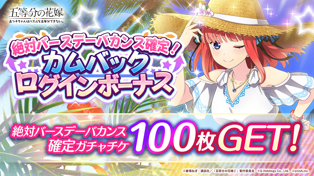 ◆絶対バースデーバカンス確定!カムバックログインボーナス