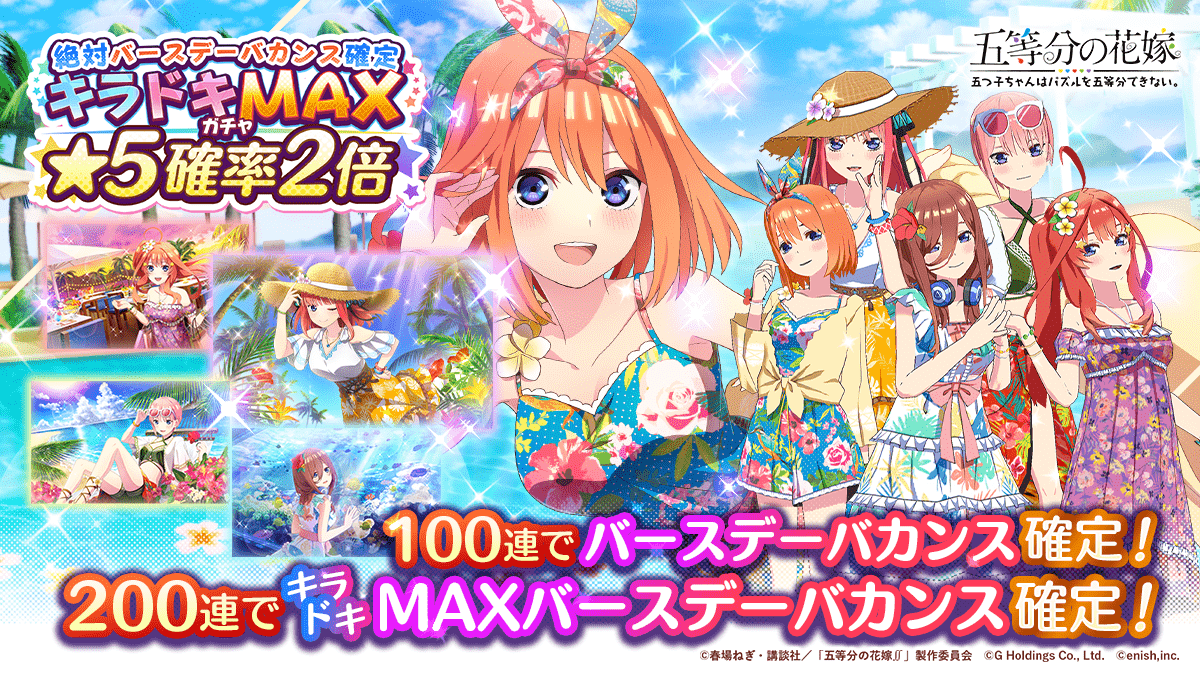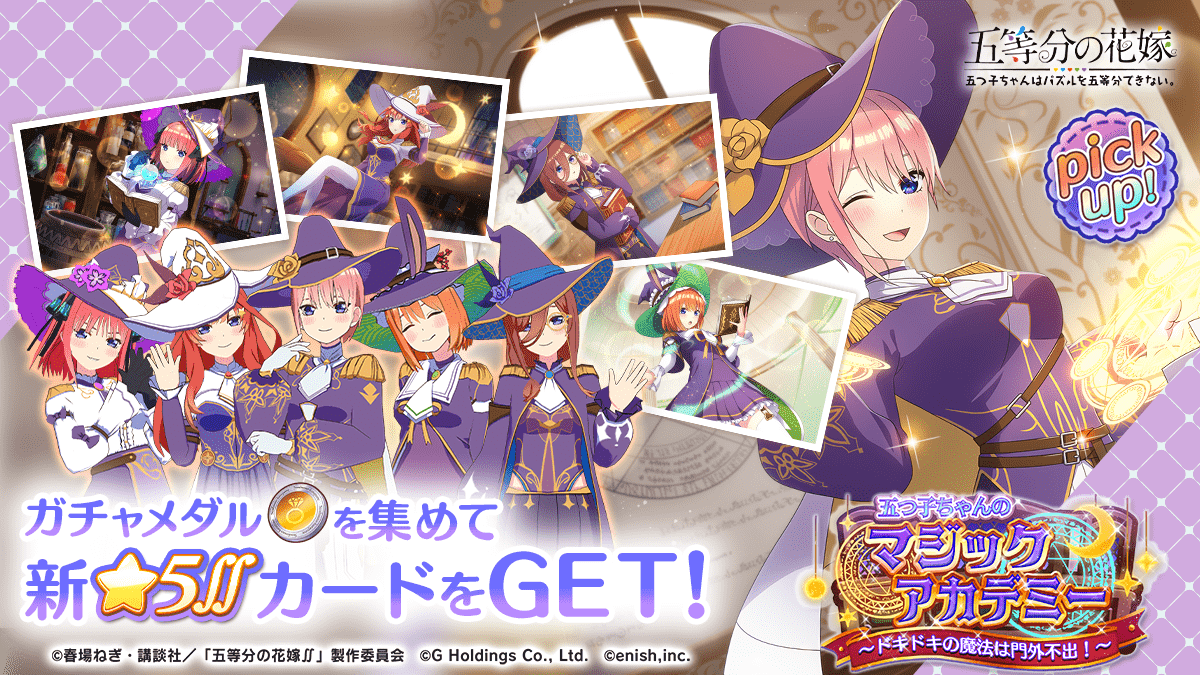『五等分の花嫁 五つ子ちゃんはパズルを五等分できない。』新イベント「五つ子ちゃんのマジックアカデミー~ドキドキの魔法は門外不出!~」&「絶対バースデーバカンス確定!キラドキMAXカムバックCP」開催!