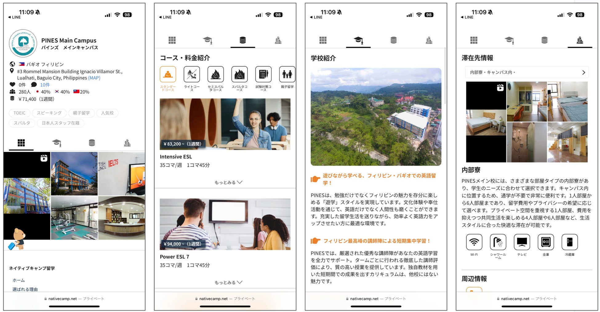 PINES Main Campus紹介ページ:https://nativecamp.net/study_abroad/school/detail/17#top