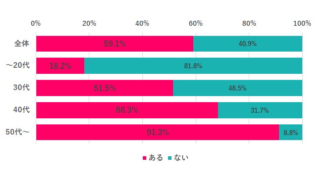 年下の上司と働いた経験があるかを尋ねたところ、全体の59.1%が「年下の上司と働いたことがある」と回答。年代別の回答を見ると、20代以下は18.2%に対し50代以上は91.3%と、年齢を重ねるほど年下の上司と働いた経験があることは、当たり前になる様子が見て取れます。