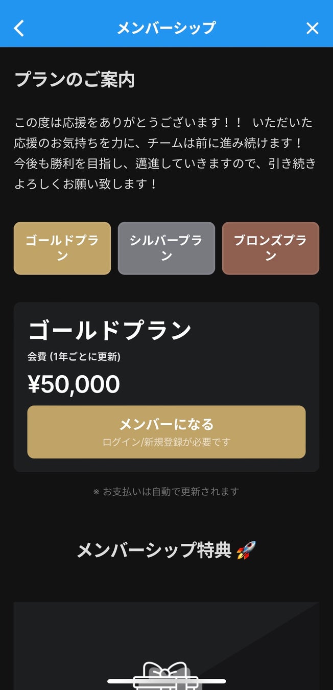 メンバーシップ機能からファンクラブ会員になって頂くと、チームから特別なグッズをお届けします!