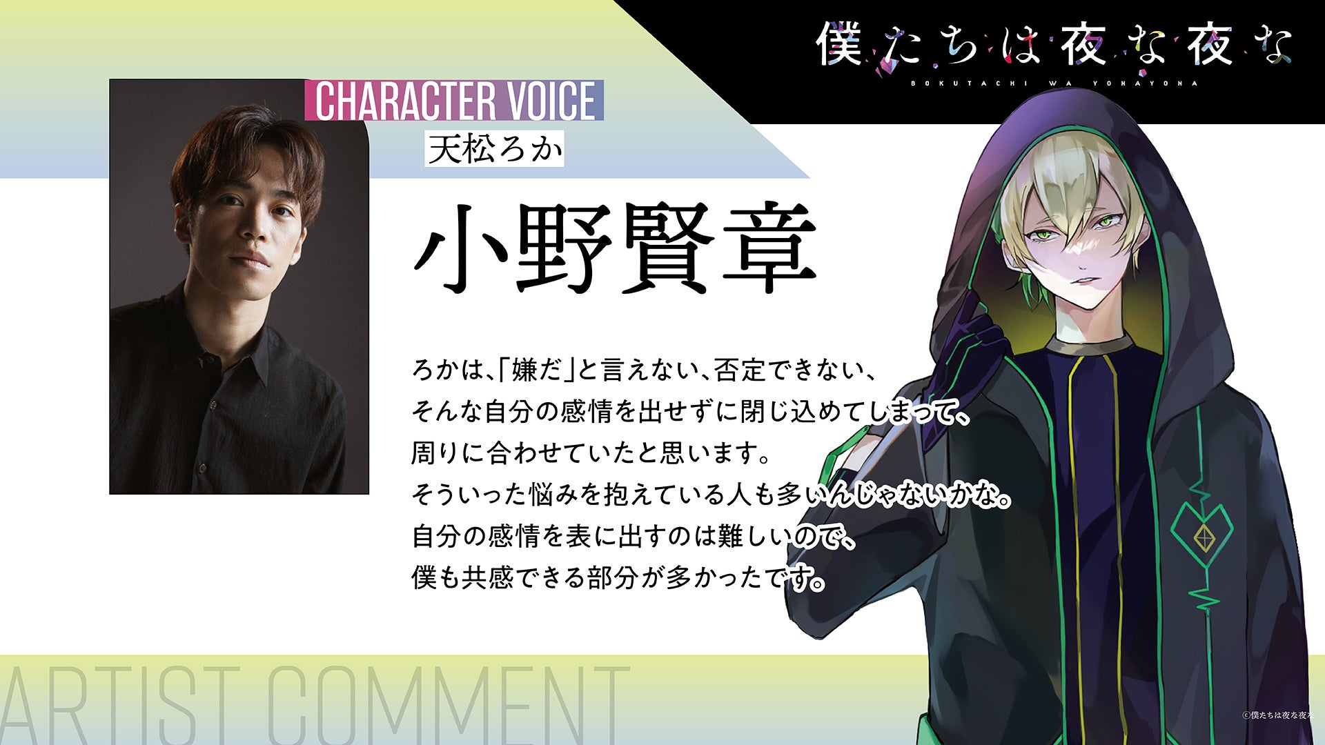 本当の自分を解放する共感性ドラマコンテンツ『僕たちは夜な夜な』(通称『僕よな』)。キャラクターが抱えている「苦悩」を声優ボイス付きショート動画で吐露し、ボカロP×歌い手によって「感情」が歌になる今作!