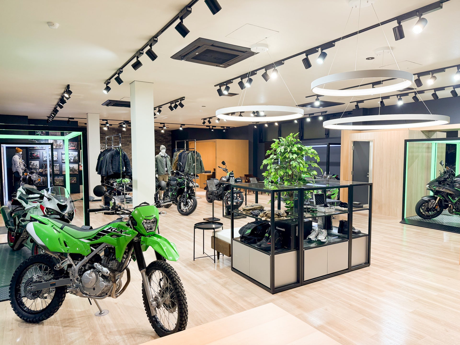 茨城県つくば市の「カワサキ プラザつくば」が店内をリニューアル!ウッディなフロアが優しいぬくもりを伝えます。「モーターサイクルのあるライフスタイル」をトータルでご提案いたします。