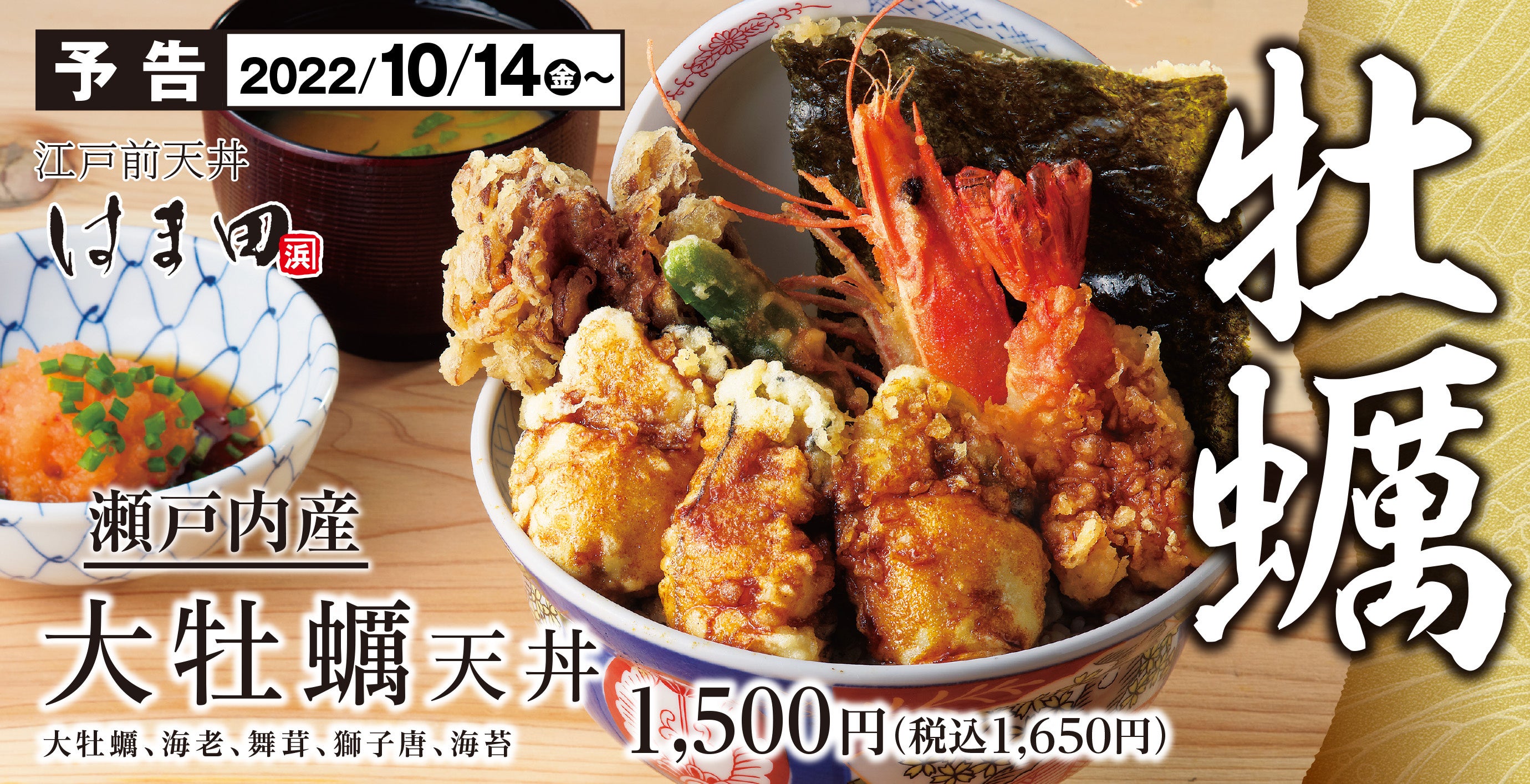 ■大牡蠣天丼 1,500円(税込1,650円)
