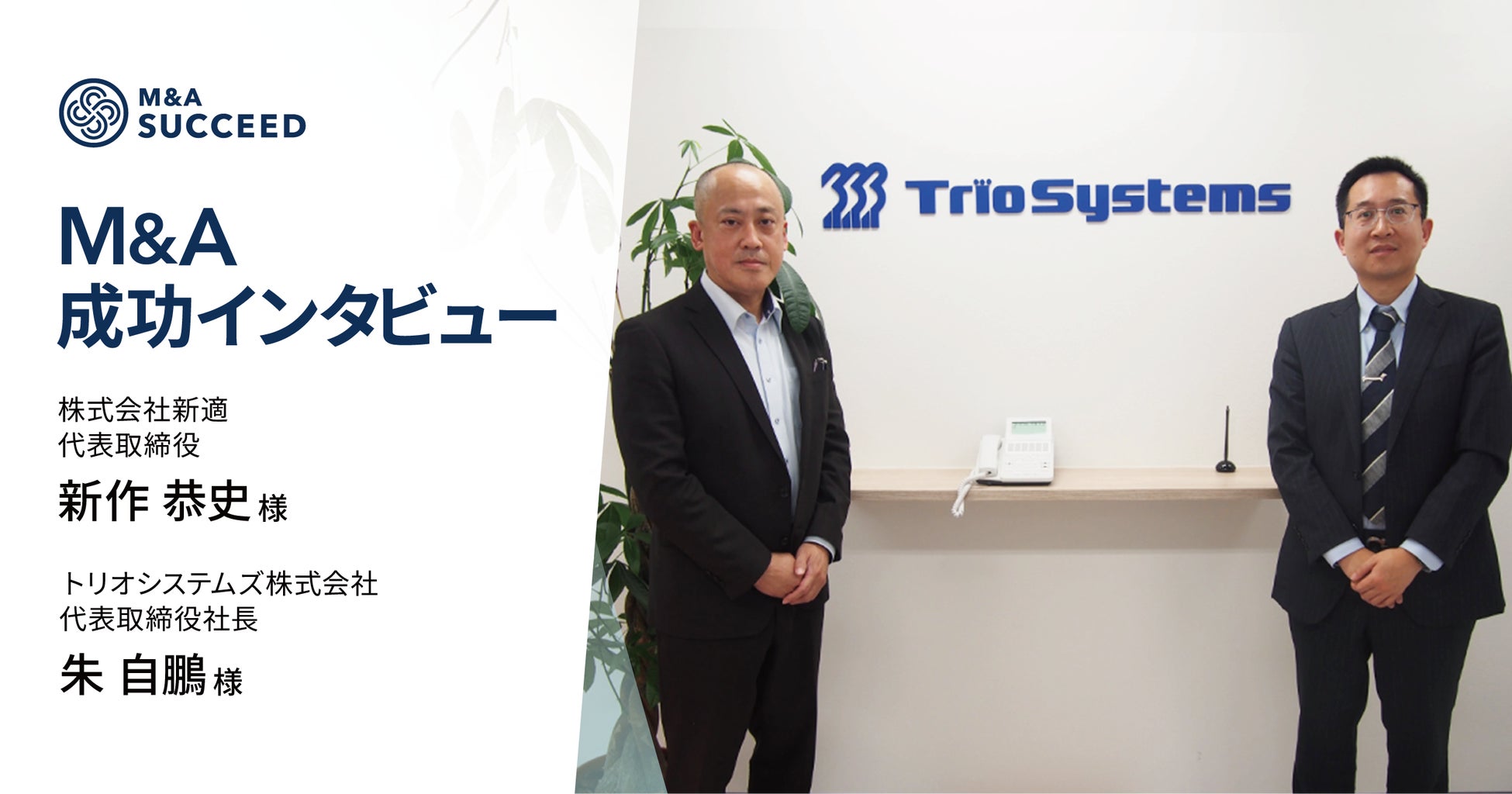 Visionalグループの株式会社M&Aサクシード(所在地:東京都渋谷区/代表取締役社長:金 蓮実)が運営する法人限定M&Aプラットフォーム「M&Aサクシード」(https://ma-succeed.jp/)が提供する「M&Aお試しマッチング」経由で、トリオシステムズ株式会社(所在地:東京都千代田区/以下、トリオシステムズ)が、株式会社新適(所在地:東京都江東区/以下、新適)を譲り受け、IPOを見据えた事業成長を実現しています。そこで本日、二社のインタビューを公開しました。