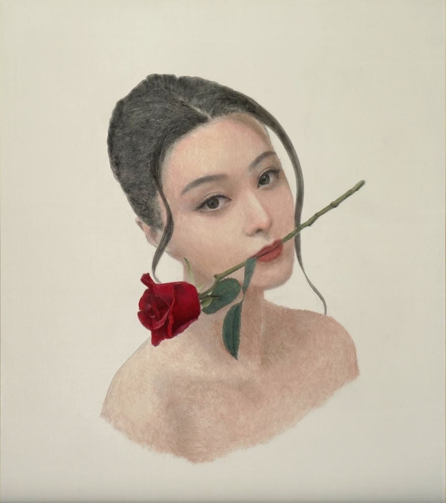 今回のコレクションにおいても、ファン・ビンビンの肖像を通して、一筆一筆に込めた情熱や繊細さが鮮やかに描き出され、圧倒的な存在感を放っています。