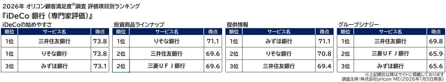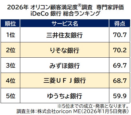 『iDeCo 銀行(専門家評価)』 https://life.oricon.co.jp/rank-ideco/#2