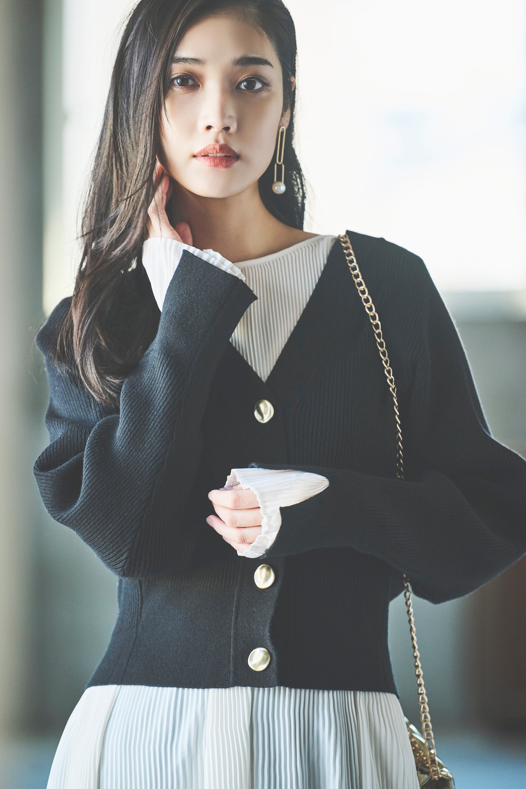 ~メタリックボタンがポイントのVネックカーディガンやとニュアンスカラーのセットアップが登場~