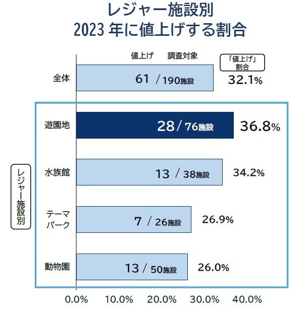 レジャー施設の3割超が今年値上げ 「遊園地」は最多の28施設・約4割が値上げ
