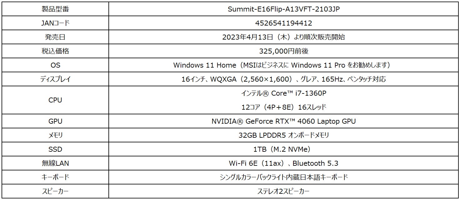 ~専用GPU搭載ビジネス・クリエイターノート「Summit E16 Flip A13V」等も同時発売~