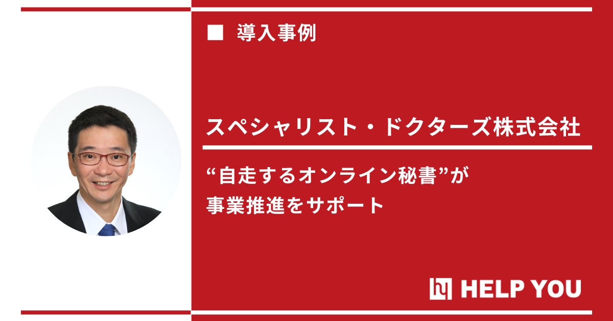 このたび、スペシャリスト・ドクターズ株式会社(本社:東京都港区、代表取締役:塩飽哲生氏)へHELP YOUサービスをご提供し、事業推進により集中できる環境の構築に貢献いたしました。