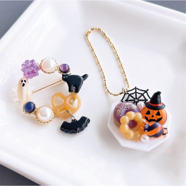 レジンで作る ハロウィンスイーツブローチとキーホルダー