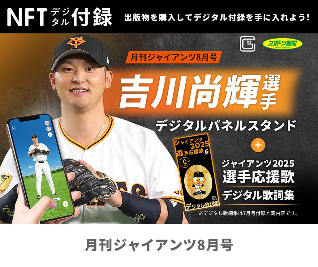 「スポーツ報知」を発行する報知新聞社(代表取締役社長・長谷川剛)は、読売巨人軍監修のファンマガジン「月刊ジャイアンツ」2025年8月号を6月24日(火)から順次、全国の書店、オンライン書店などで発売します。A4判88ページオールカラー。付録は、吉川尚輝内野手のデジタルパネルスタンドとジャイアンツ2025選手応援歌デジタル歌詞集です。書店でのお取り寄せ可能。お近くのYC(読売新聞販売店)でも注文を承ります。ECサイトの「ジャイアンツ公式オンラインストア」、「ショップ報知」、東京ドームの巨人軍直営グッズショップ「GIANTS STORE BALLPARK TOKYO」でも購入できます。