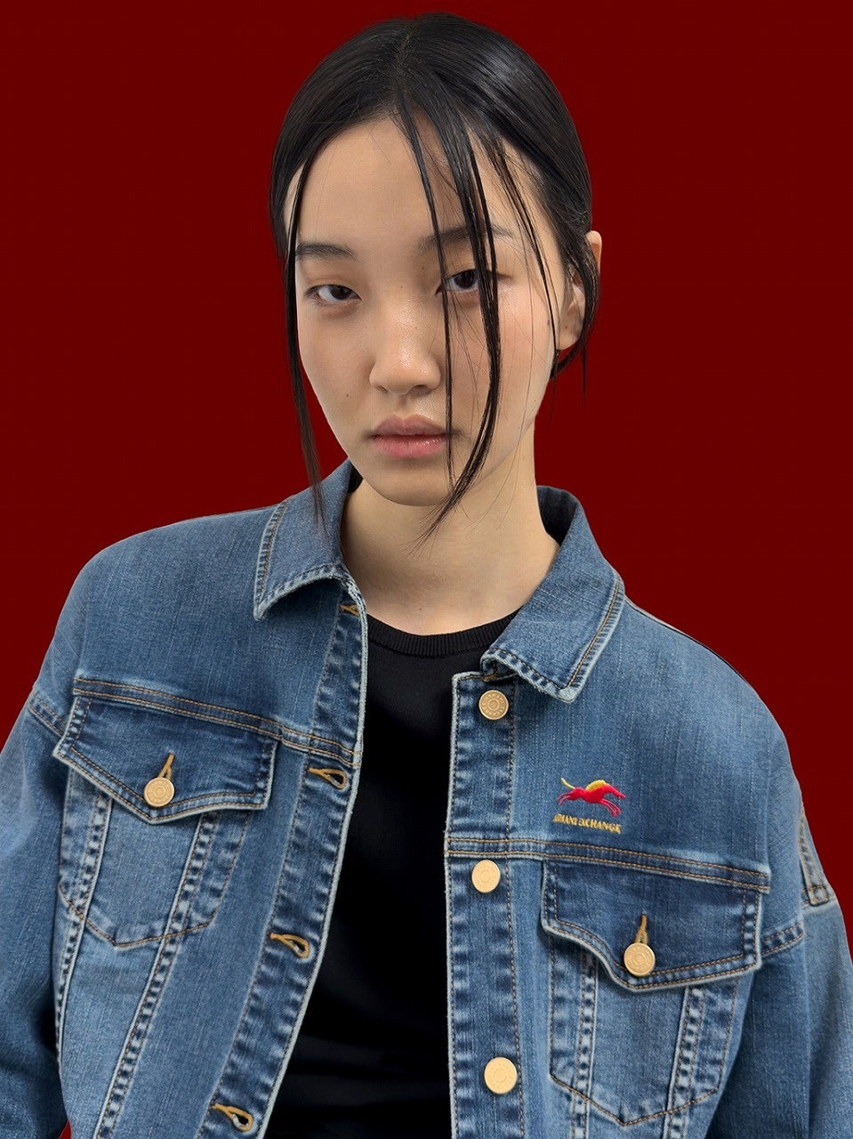 ディテールには、ゴールドフォイルプリントやロゴ、ゴールドメタルのトリム、ゴールドのデニムブランドタグをアクセントとして配置。ブラックとチャイニーズレッドを基調とした力強いカラーパレットに、控えめながらも印象的な輝きを添え、祝祭のムードとモダンなエッジを両立させました。