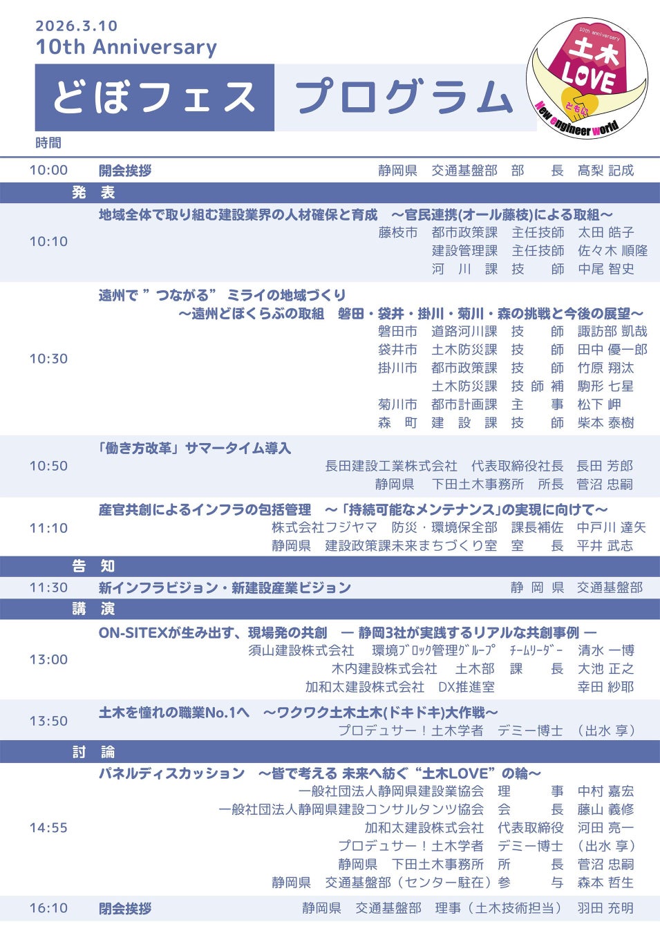 主 催 静岡どぼくらぶ事務局/静岡県交通基盤部 建設政策局・建設経済局