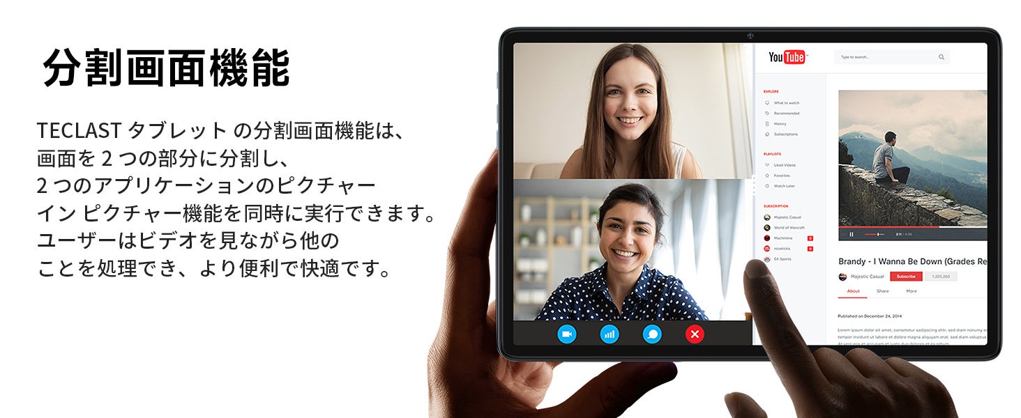 TECLAST T40 PROタブレットPCは、大容量の8GB LPDDR4を搭載しており、超高速でスムーズな操作体験をお楽しみいただけます。128GBのストレージ容量は、より多くのアプリ、プレイリスト、写真などをサポートします。また、別売のMicroSDカード(FAT32フォーマット対応)を使用することで、最大1TBのストレージを利用することができます。ウェブサイトや動画を視聴したり、重いアプリやゲームをハイビジョンで楽しんだりすることができます。お気に入りの本、音楽、写真、映画、ゲームなど、何でもダウンロードして保存することができ、容量の心配をせずに存分にお楽しみいただけます。
