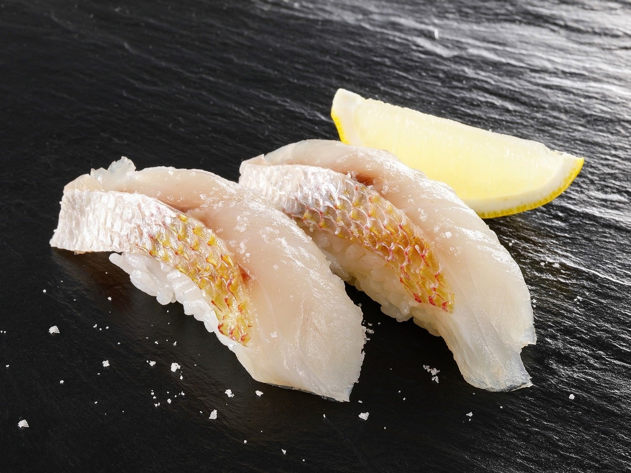 淡い黄金色が美しい「き鯛」は、国内唯一の伝統的な「底引き網漁」技術を持つ山田丸でとり、鮮度保持したまま長崎魚市に荷揚げされたものです。ほどよい脂と上品な旨味が広がる白身魚で、身はしっとりとやわらかく、後を引くほのかな甘みが味わえます。葱(ねぎ)もみじやレモン塩、炙りにしても絶品。季節を感じる一貫をお楽しみください。