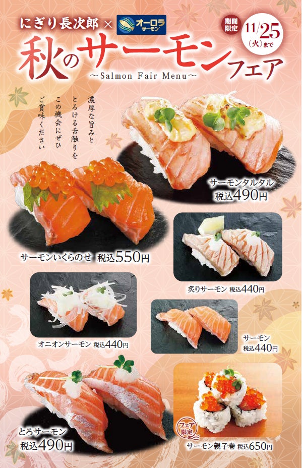 【にぎり⻑次郎】10/21(火)から期間限定秋メニュー第2弾販売開始!