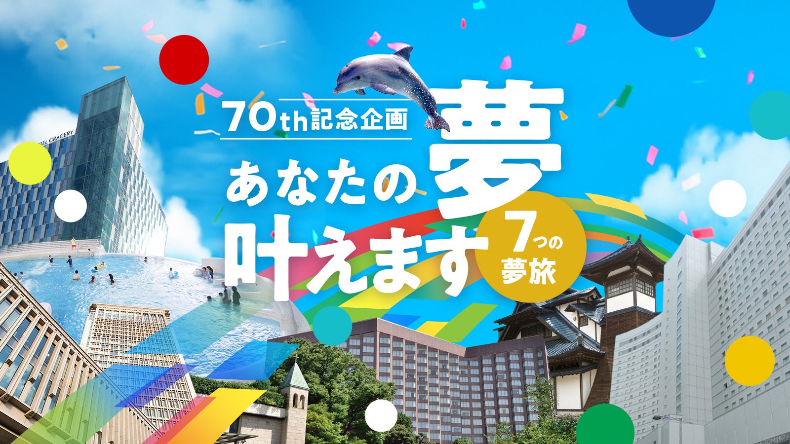 感謝の思いを込め、周年記念企画第1弾としてお客さまの夢を叶える「あなたの夢叶えます~7つの夢旅~」を開催いたします。当社の日本国内施設にて、「叶えたい」「やってみたい」という皆さまの自由な“夢”をご応募いただき、その中から設立70周年にちなんだ“7つ”の夢を叶える企画です。