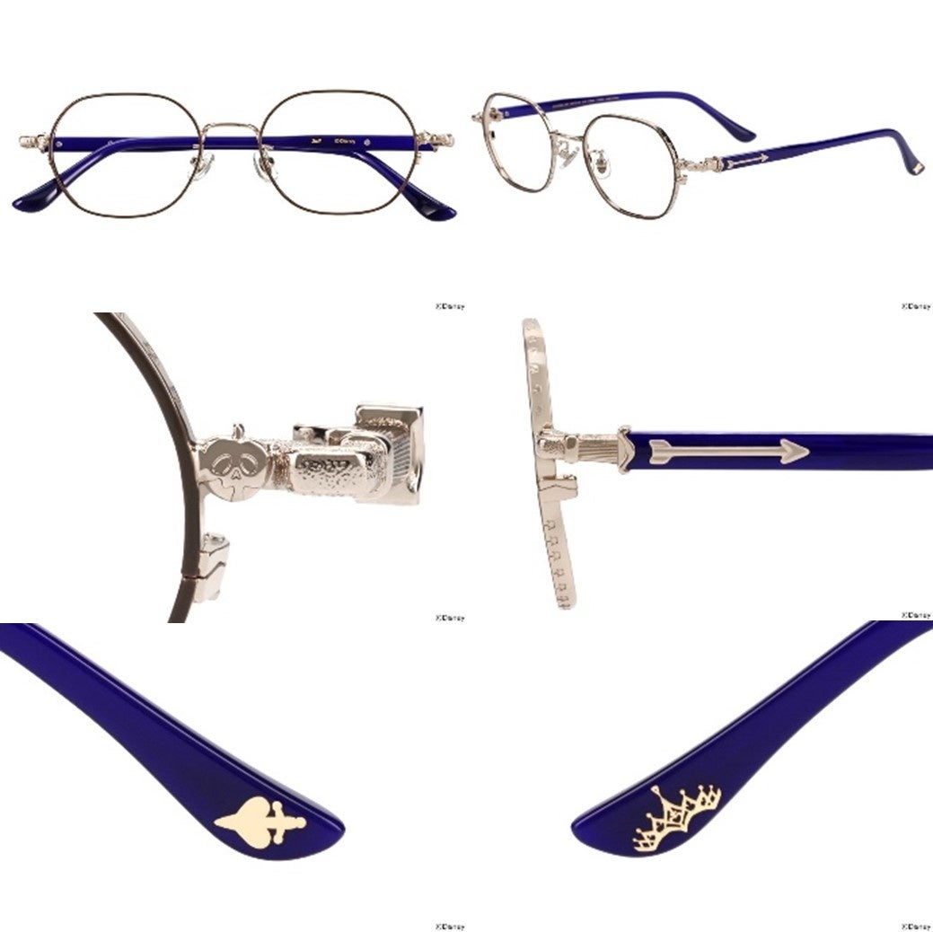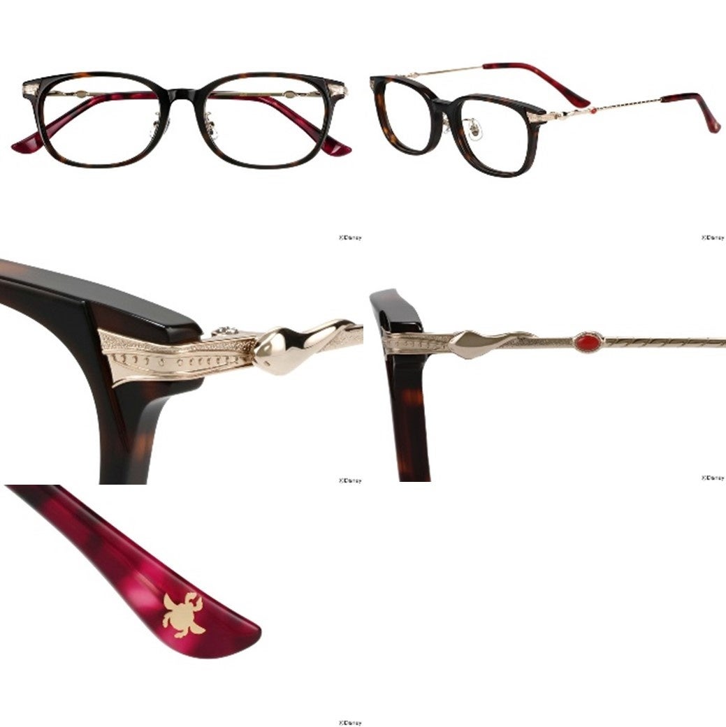 『Disney Collection created by Zoff “Disney Twisted Wonderland”』では、「ナイトレイブンカレッジ」の各寮をイメージした特別なメガネが前回コレクションから更にパワーアップしました。ハーツラビュル寮モデルは、両サイドにバラのモチーフ、上から見るとトランプの4つのスートをデザイン。サバナクロー寮モデルには、テンプルにサバナクロー寮をイメージした彫金と爪痕、テンプル(つる)の先端には箔押ししたハイエナとオオカミのモチーフがデザインされるなど、各寮の世界観を表現したメガネに寮生の要素を詰め込んだ、贅沢な一本です。
