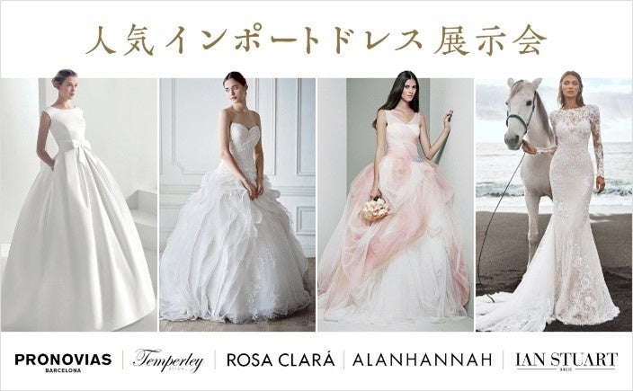 PRONOVIAS、Temperley London、ROSA CLARAなど海外人気ブランドのインポートドレスの美しさをぜひ直接ご覧ください。
