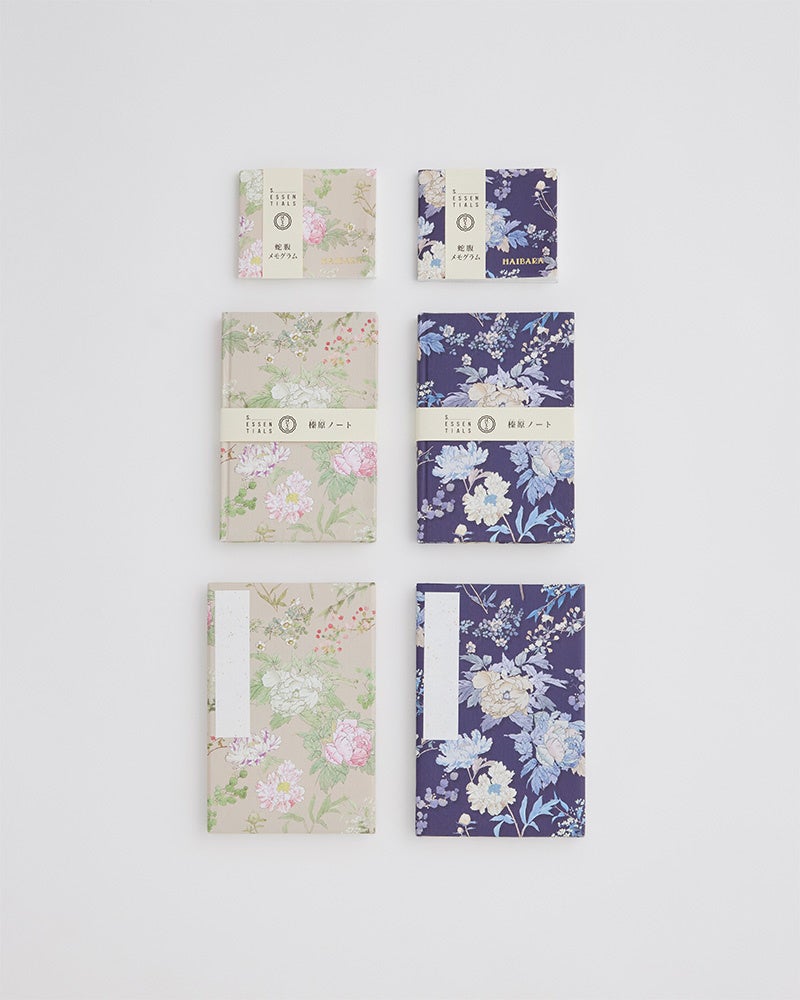榛原とのコラボ柄は、ノートや御朱印帳、メモグラムといった文具のカバーにも採用されています。手書きの機会が少なくなった現代において、メモ帳やノートに託す想いは特別。伝統とモダンが融合する花柄をのせたこの一冊を選ぶのもおすすめです。