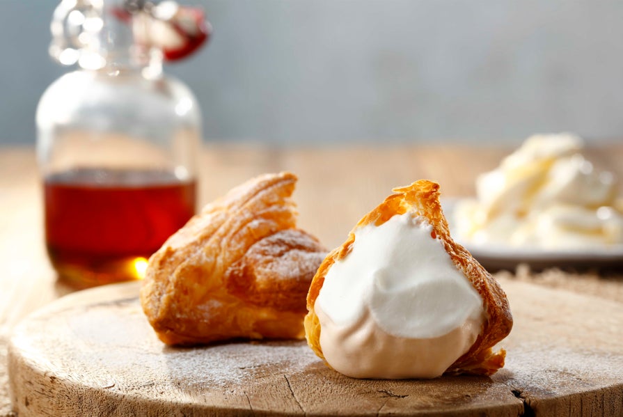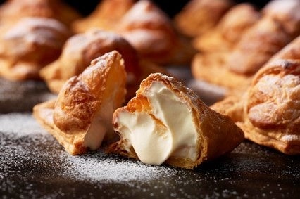 店内のオーブンで焼き上げたサクサクのパイに、北海道産ミルクをたっぷり使った特製のミルククリームをたっぷりと詰め込みました。