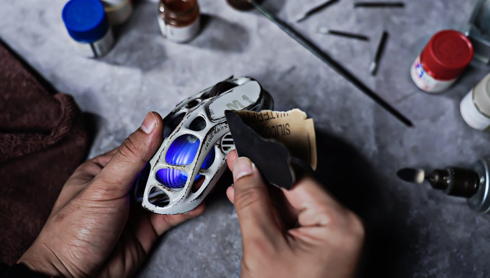 一つ一つ手作業でウェザリング加工※(汚し塗装)がされたマグネシウム合金ボディは唯一無二。ハンドメイドで施された加工は、これまでの戦いで得た栄光の証。同じデザインのモノがない、世界に一つだけのマウスです。
