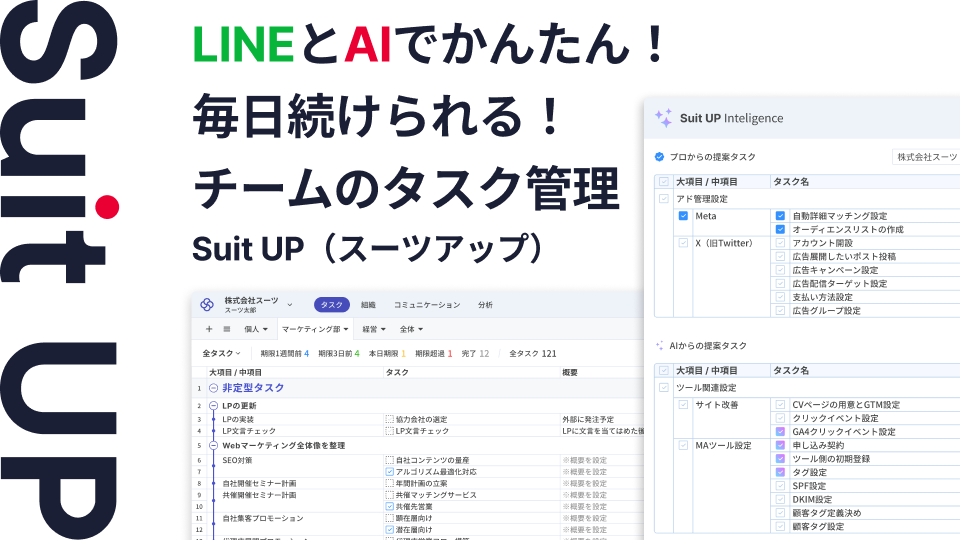 AIタスク管理・プロジェクト管理ツール「スーツアップ」、LINE連携の機能追加のお知らせ