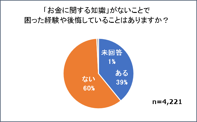 ・「お金に関する知識」が無いことで困った経験や後悔していることがある人は全体の4割