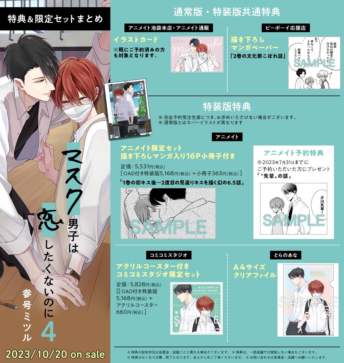 ※10月20日発売新刊「マスク男子は恋したくないのに 4」特装版・通常版は対象外です