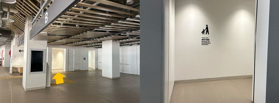 今回はご家族連れの方向けに、キッズルームやベビーカー置き場をご案内します。