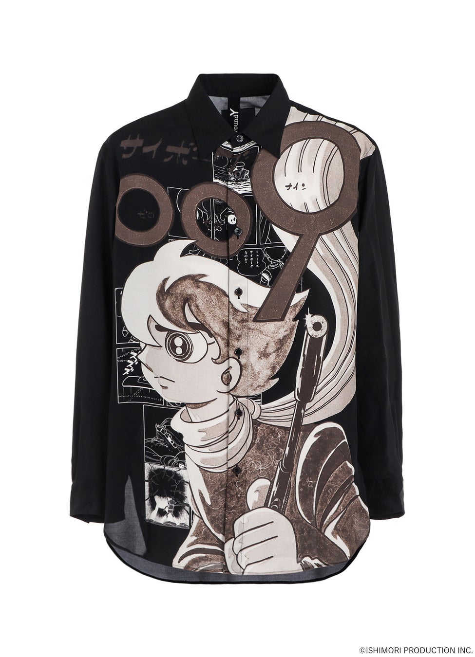 『サイボーグ009』の登場人物たちをGround Y独自の視点で表現したオリジナルグラフィックアイテムや、島村ジョーの特殊能力「加速装置」を使うシーンをはじめ漫画の名場面を大胆にプリントしたシャツ、Tシャツなど、作品の魅力を堪能できる特別なコレクションとなっています。原画を水彩画風に仕上げたTシャツや、サイボーグ戦士たちの宿敵「スカール」をあしらったフーディーなども必見です。さらに「Dr.YY」をモチーフにしたアイテムが加わり、コラボレーションの特別感を一層引き立てています。