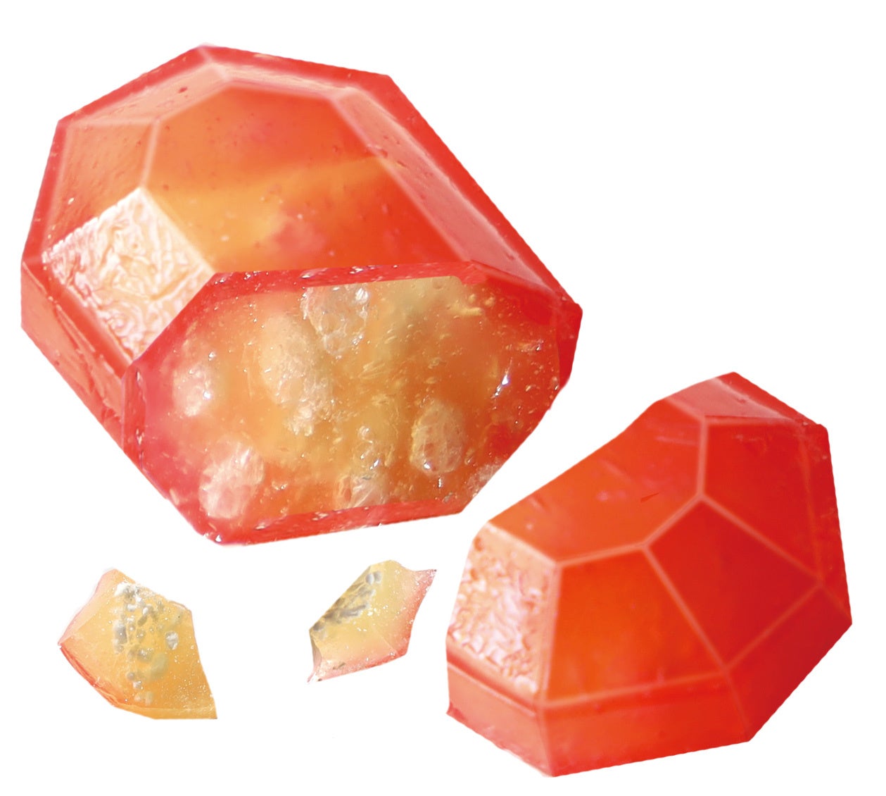 飴粒は、りんごをイメージした赤×黄色の組飴で、まるで本物のりんごのようなジューシーで甘ずっぱい味わい。さくっと噛めるよう、飴粒の外側の層は薄く仕上げ、内側にはりんごのフリーズドライが入った”秘密のさくさく層“となっており、ASMR食感を楽しめる2層構造となっています。
